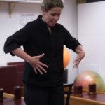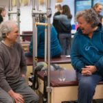 Susannah introducing a guest to the Pilates Universal Reformer
